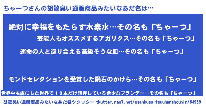 | 意味不明あだ名 | 『ちゃーつフォーエバー』『自称ちゃーつ』 |