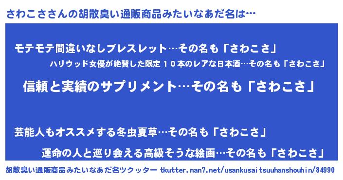 | 欧米人風あだ名 | 『さわこさ・ステッグマイヤー』 |