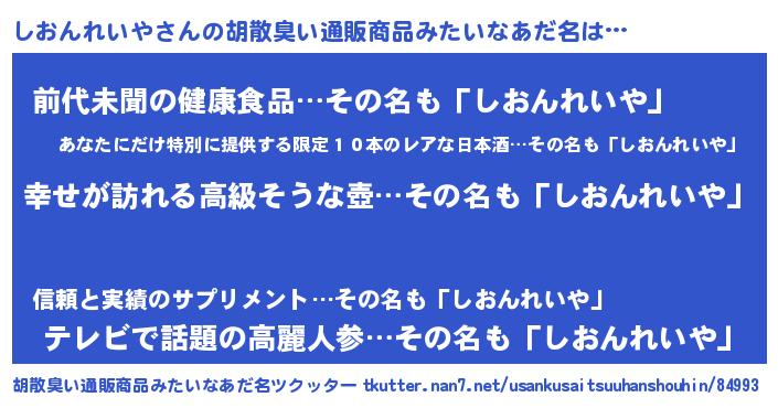 | 伝説のあだ名 | 『秘められし忍者しおんれいや』 |