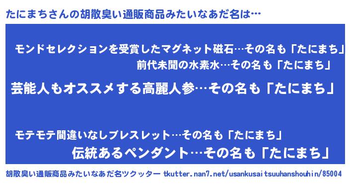 | 意味不明あだ名 | 『自称たにまち』『つくし科たにまち属』 |
