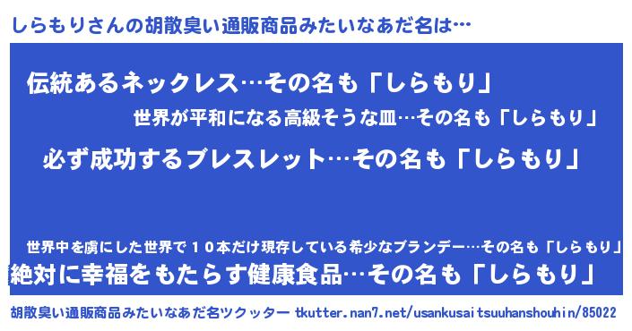 | 料理風あだ名 | 『しらもりごはん』 |