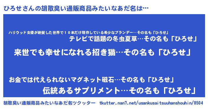 | 意味不明あだ名 | 『永久保存ひろせ』『もやし科ひろせ属』 |