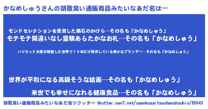 | ヘコむあだ名 | 『かなめしゅう(苦笑)』『かなもー』 |