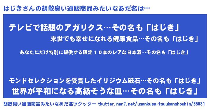 | ヘコむあだ名 | 『酢こんぶ』『はじき(笑)』 |