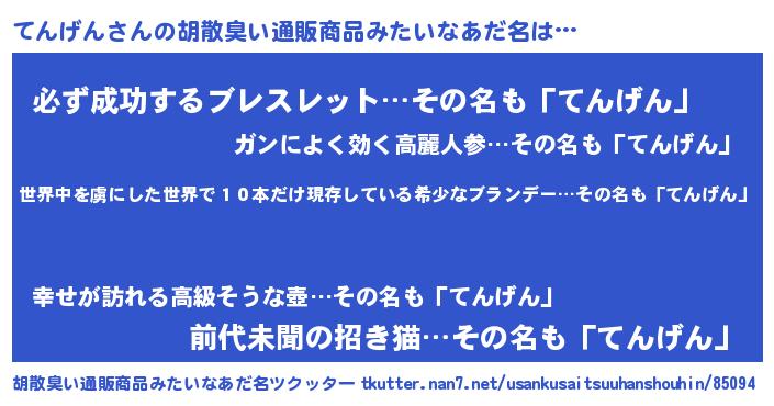 | 意味不明あだ名 | 『住所不定無職てんげん(79歳)』 |