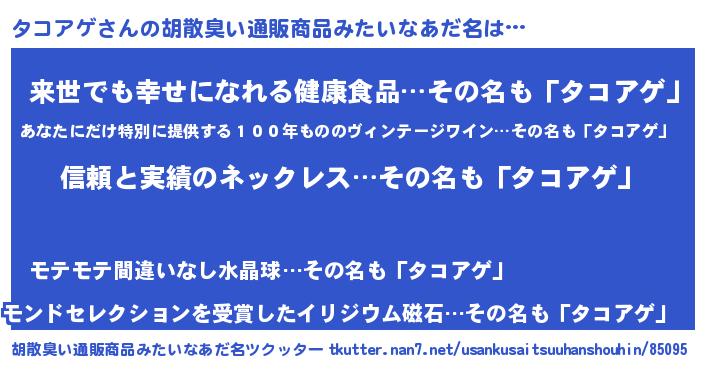 | 意味不明あだ名 | 『とにかく怪しいタコアゲ』 |