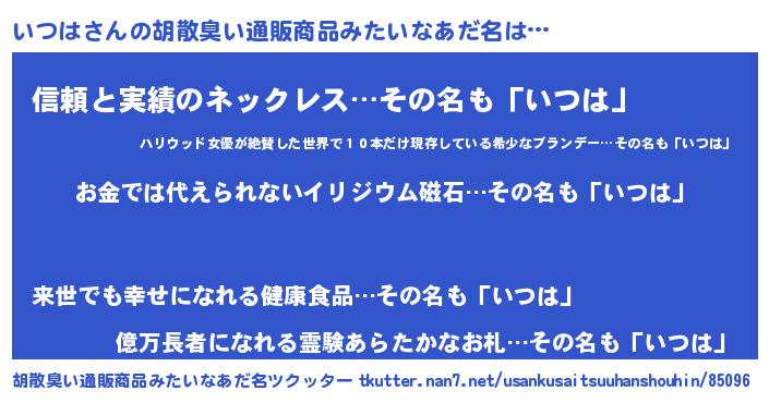 | ヒーロー風カッコイイあだ名 | 『慈愛の使者いつは』『暗黒騎士イツ』 |