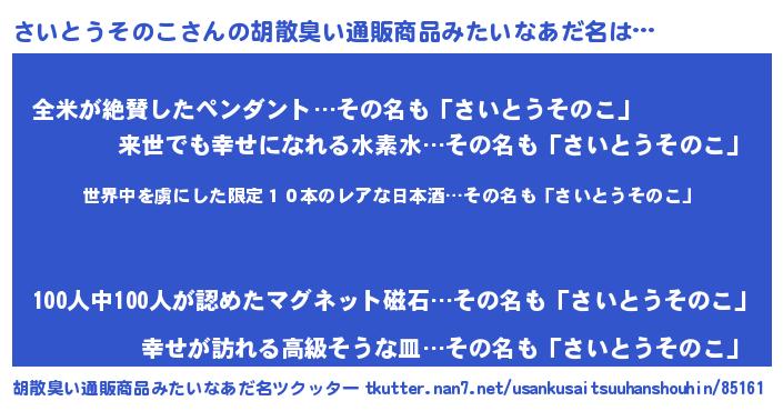 | ヘコむあだ名 | 『さい太郎』『レバニラ』『さいにー』 |