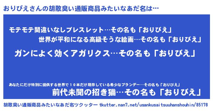| ヘコむあだ名 | 『おりにゅー』『おりびえ(小並感)』 |