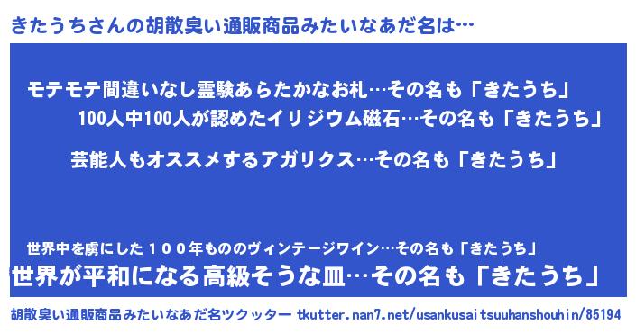 | 意味不明あだ名 | 『自称きたうち』『ペロリンきたうち』 |