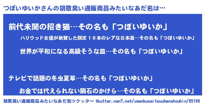 | 意味不明あだ名 | 『つぼいゆいかフォーエバー』 |
