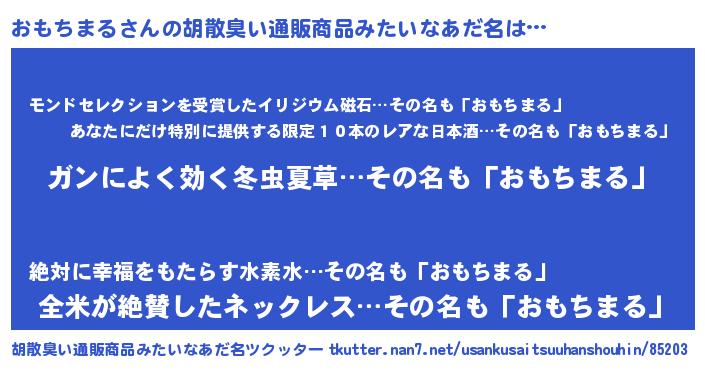 | 男性向けラノベタイトル風あだ名 | 『緋弾のオモチマル』 |