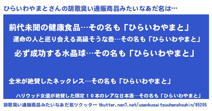| ヘコむあだ名 | 『ひらにゅー』『ひらいわやまと(苦笑)』 |