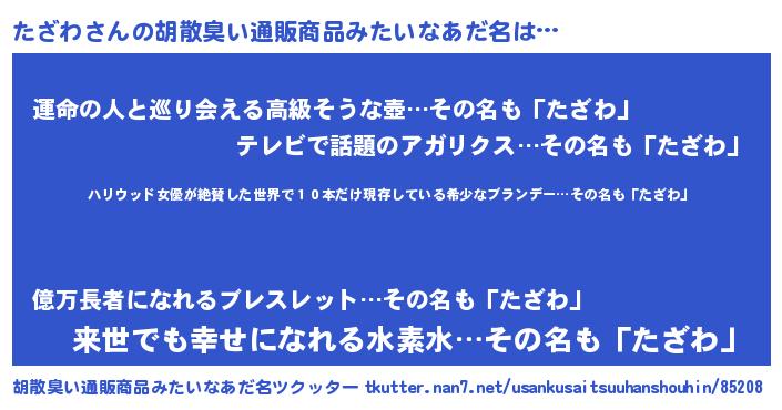 | 意味不明あだ名 | 『住所不定無職たざわ(85歳)』『自称たざわ』 |