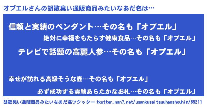 | 意味不明あだ名 | 『自称オプエル』『ペロリンオプエル』 |
