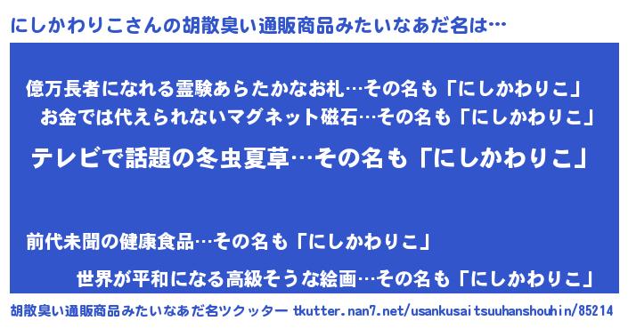 | 肩書あだ名 | 『にしかわりこ総統』『にしかわりこ社長』 |