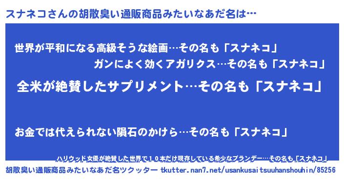 | ヘコむあだ名 | 『スナを』『なまこ酢』『スナにー』 |