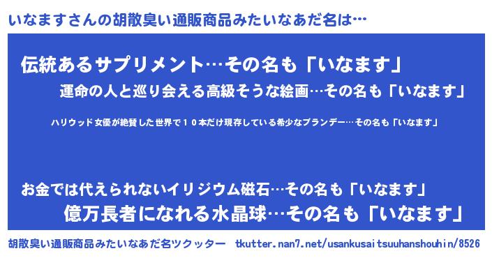 | 意味不明あだ名 | 『住所不定無職いなます(86歳)』 |