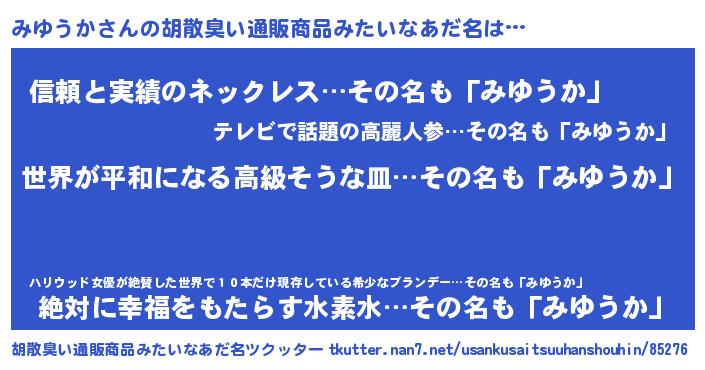 | 意味不明あだ名 | 『みゆうかフォーエバー』『自称みゆうか』 |