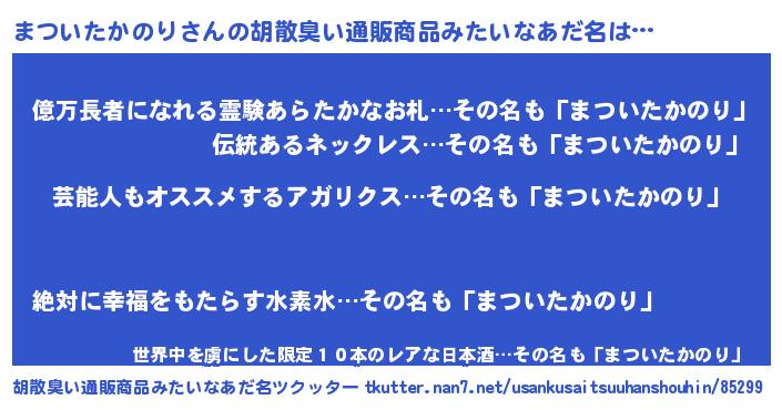 | 意味不明あだ名 | 『自称まついたかのり』 |