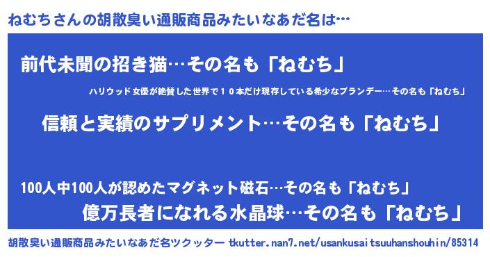 | ヘコむあだ名 | 『ねむお』『ねむち(苦笑)』 |