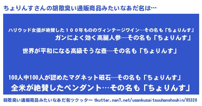 | 欧米人風あだ名 | 『ちょりんすクリステル』 |