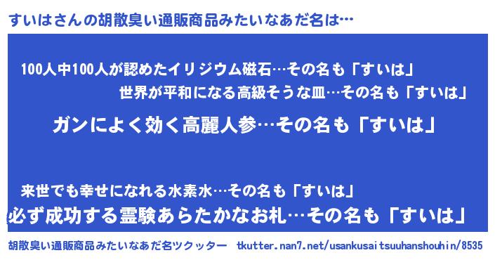 | 意味不明あだ名 | 『自称すいは』『眠気覚ましガムすいは味』 |