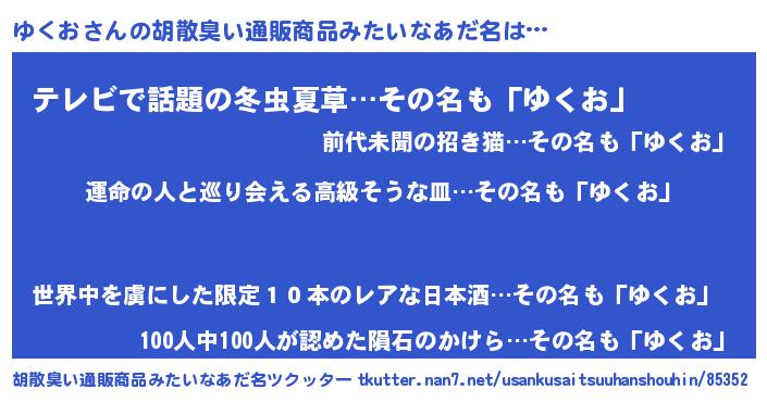 | 意味不明あだ名 | 『ゆくおフォーエバー』『自称ゆくお』 |