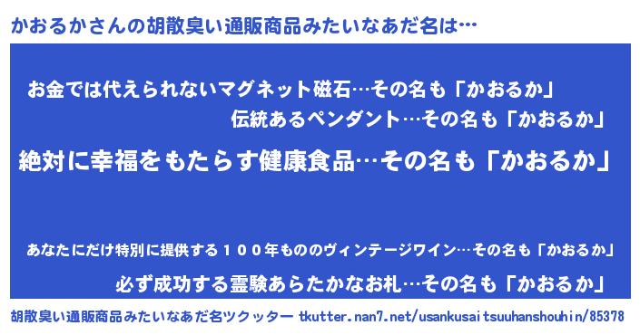 | ヘコむあだ名 | 『かおるか(爆)』『かおにー』 |