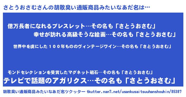 | 欧米人風あだ名 | 『アンジェラ・さとうおさむ』 |