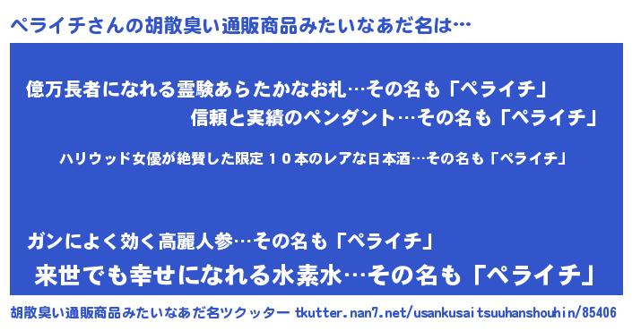 | 意味不明あだ名 | 『住所不定無職ペライチ(65歳)』 |