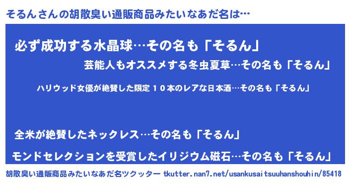 | ピコ太郎風あだ名 | 『ソコ四郎』『ソソ太郎』『ソル十郎』 |