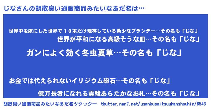 | 伝説のあだ名 | 『伝説のスナイパーじな』 |