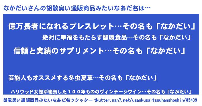 | 女子向けラノベタイトル風あだ名 | 『なかだいは平凡を望む』 |