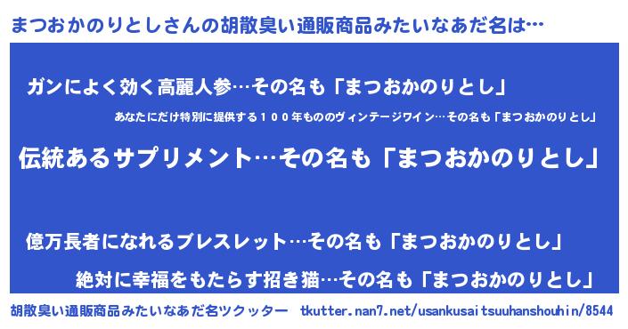 | 男性向けラノベタイトル風あだ名 | 『ダンジョンにまつおかのりとしを求めるのは間違っているだろうか』 |