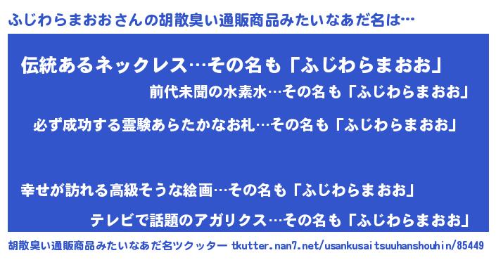 | 伝説のあだ名 | 『伝説のスナイパーふじわらまおお』 |