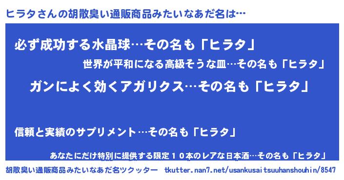 | 意味不明あだ名 | 『自称ヒラタ』『ペロリンヒラタ』 |
