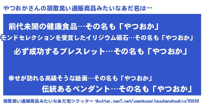 | 意味不明あだ名 | 『ペロリンやつおか』『永久保存やつおか』 |