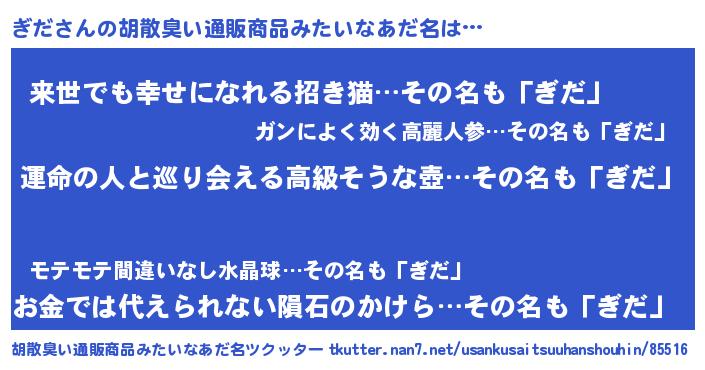 | ヘコむあだ名 | 『酢こんぶ』『ぎだ(笑)』『ぎだお』 |