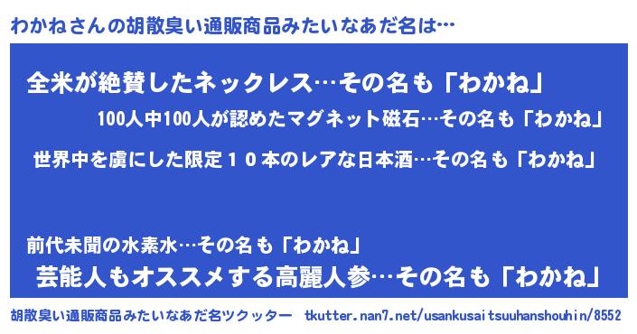 | ヘコむあだ名 | 『わかっぺ』『わかね(笑)』『豆乳』 |