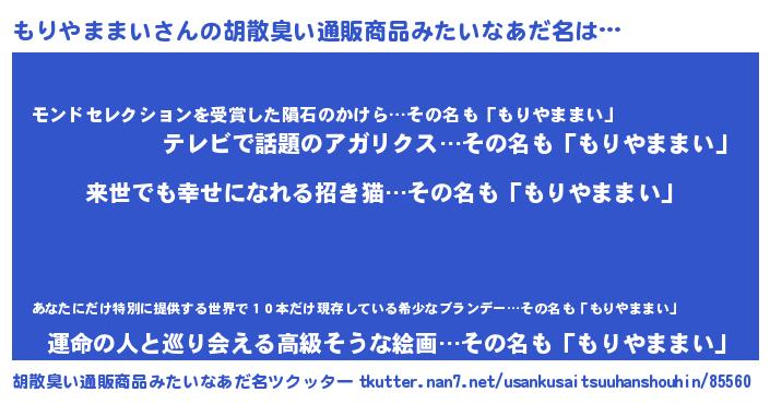 | 意味不明あだ名 | 『永久保存もりやままい』 |