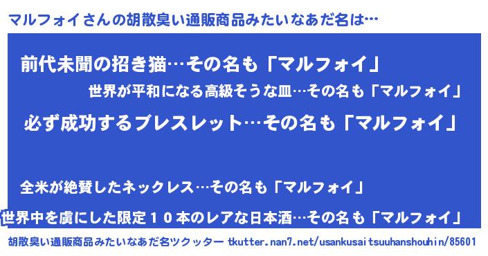 | ヒーロー風カッコイイあだ名 | 『スーパーマルフォイ』『ネオマルフォイ』 |