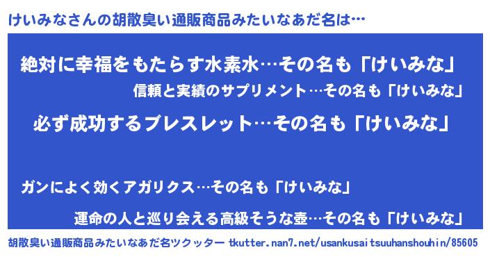 | 意味不明あだ名 | 『ペロリンけいみな』『永久保存けいみな』 |