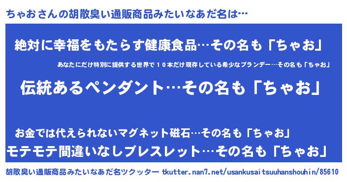 | ヘコむあだ名 | 『ちゃぷりん』『ちゃお(遠い目)』 |
