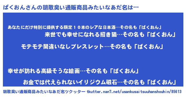 | ヘコむあだ名 | 『ばくにー』『ばくおん(笑)』 |