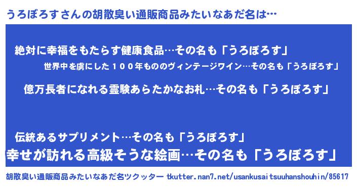 | ヘコむあだ名 | 『うろもー』『うろぼろす(爆)』 |