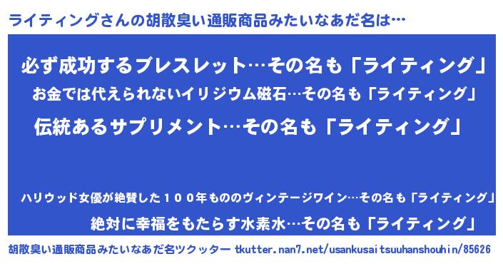 | 意味不明あだ名 | 『とにかく怪しいライティング』 |