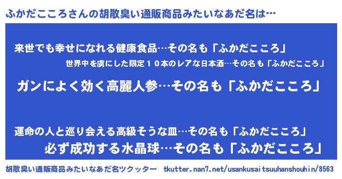 | 女子向けラノベタイトル風あだ名 | 『ふかだこころアンティーク』 |