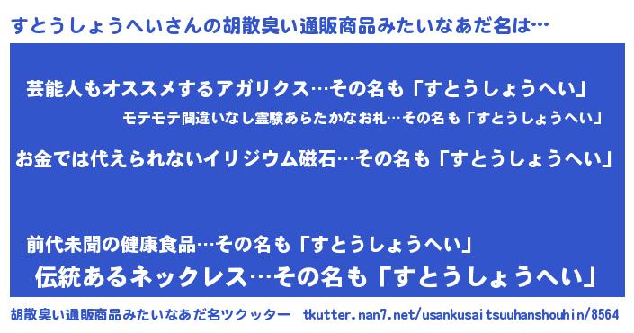 | ヒーロー風カッコイイあだ名 | 『慈愛の使者すとうしょうへい』 |