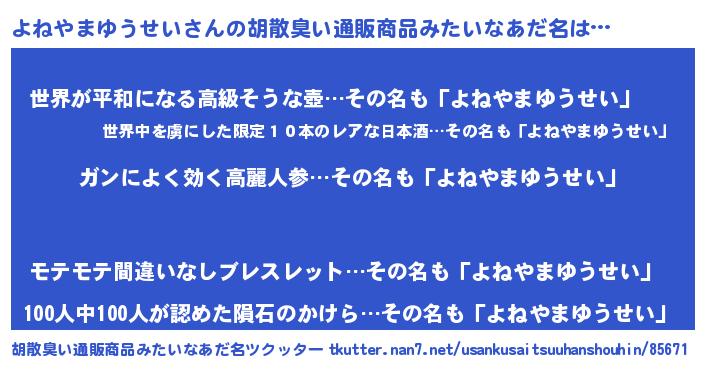 | 意味不明あだ名 | 『自称よねやまゆうせい』 |